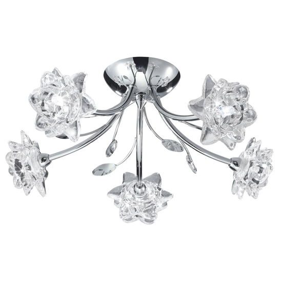 Bellis 5 Lights Clear Glass Semi Flush Ceiling Light In Chrome