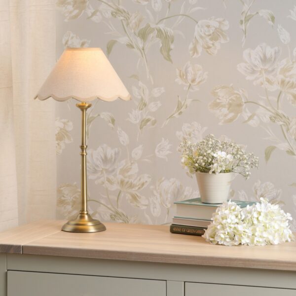 Laura Ashley Cordwell Table Lamp In Antique Brass With Scalloped Natural Linen Shade
