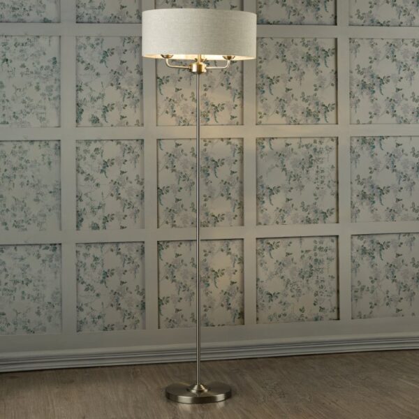 Laura Ashley Sorrento 3 Light Floor Lamp in Satin Nickel with Natural Shade
